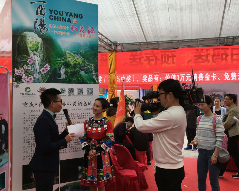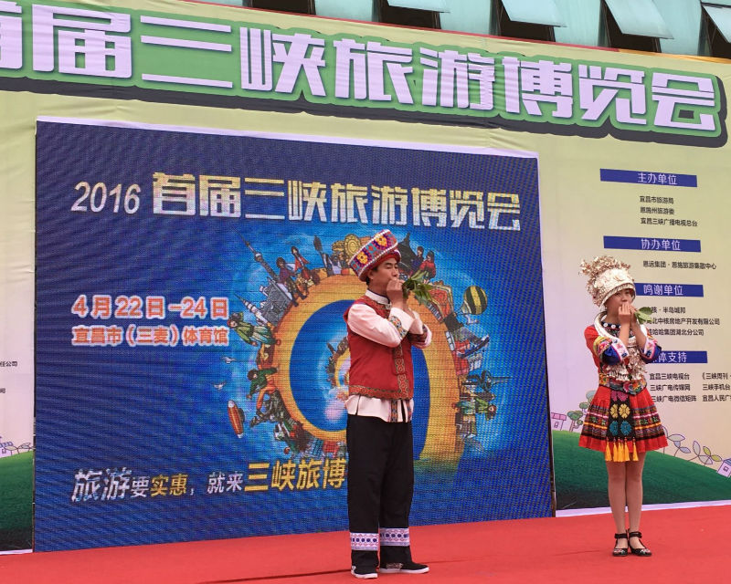 4月23日,2016首届三峡旅游博览会在湖北省宜昌市召开,我县携世外桃源旅游产品和木叶吹奏等民族文化参加盛会。开幕式上,宜昌电视台走进我县展台,现场采访和直播报道了酉阳旅游资源情况以及张宗应,胡思思表演的木叶吹奏节目。