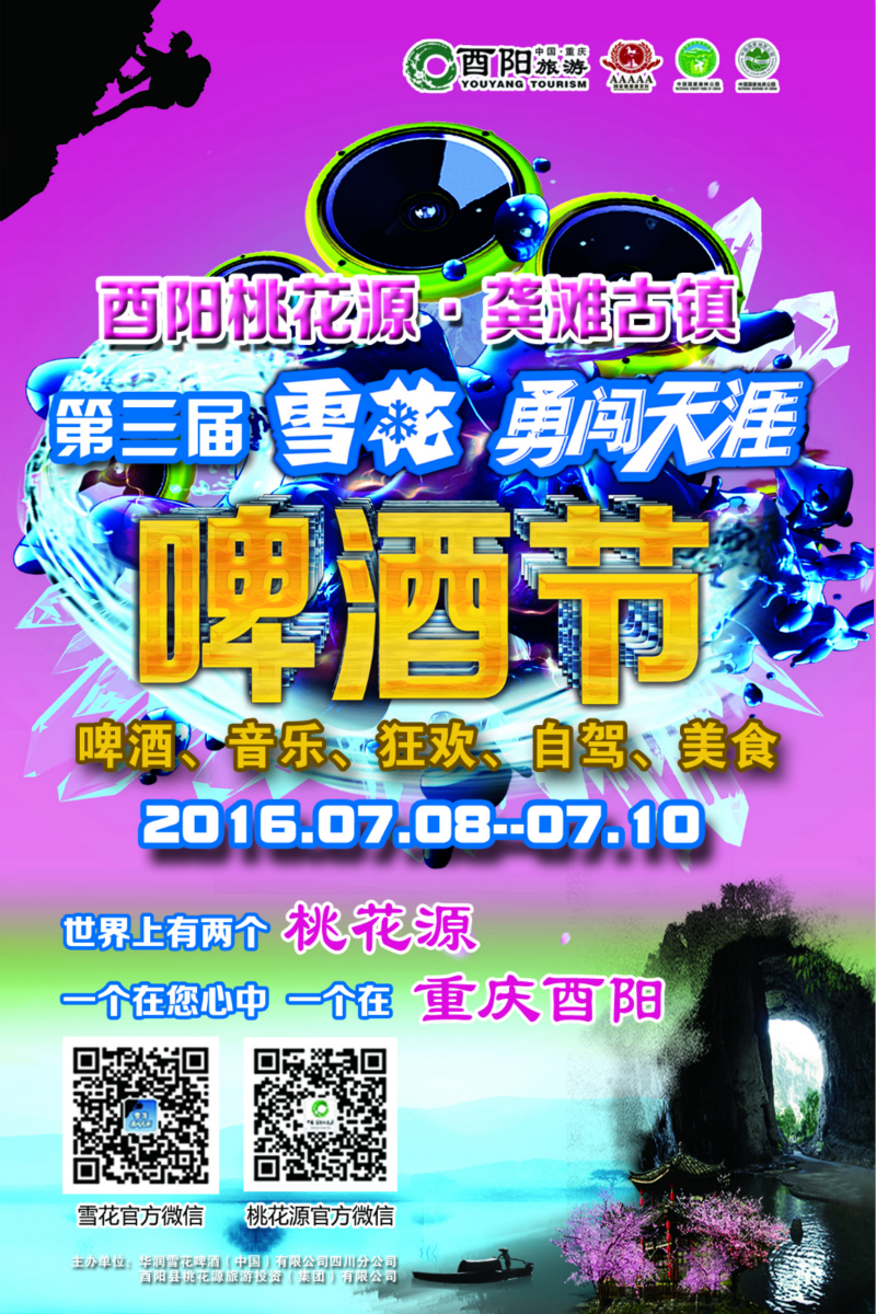 附:7月9日 2016酉阳桃花源·龚滩古镇雪花勇闯天涯啤酒节节目一览